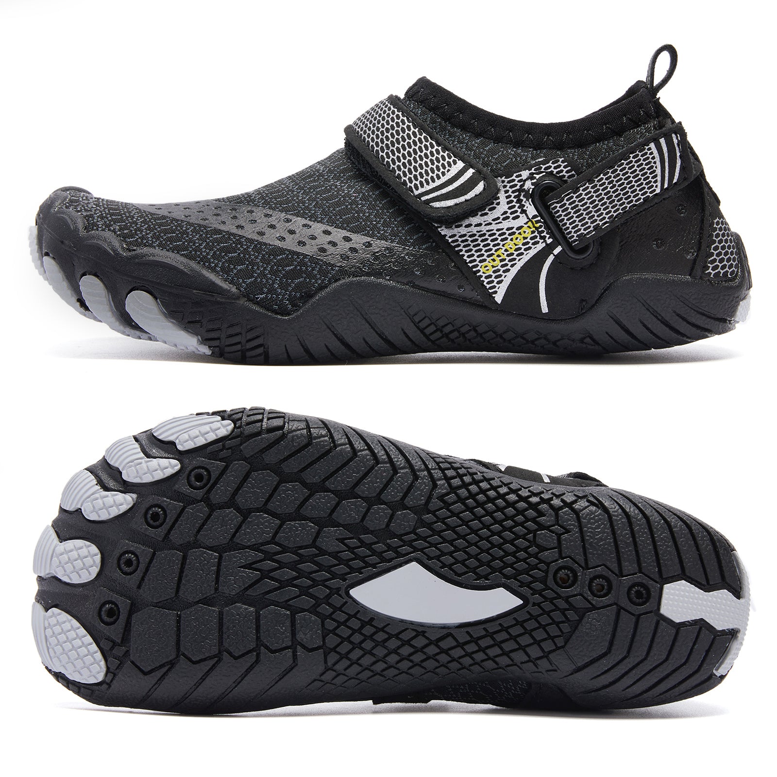• EASY ON AND OFF: Hook-and-loop strap holds water shoes securely on feet; lightweight and flexible, easy on & off.