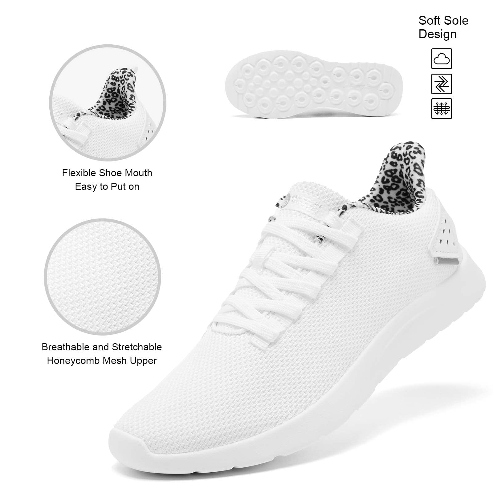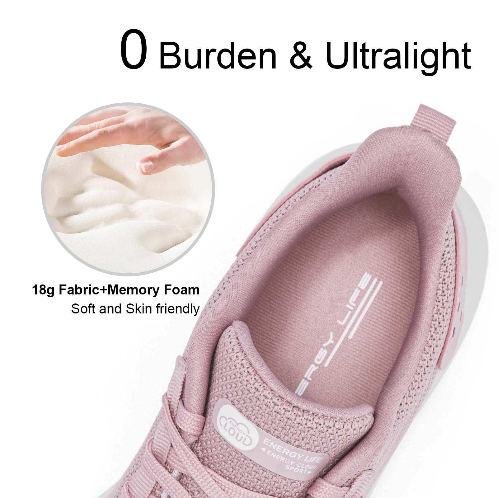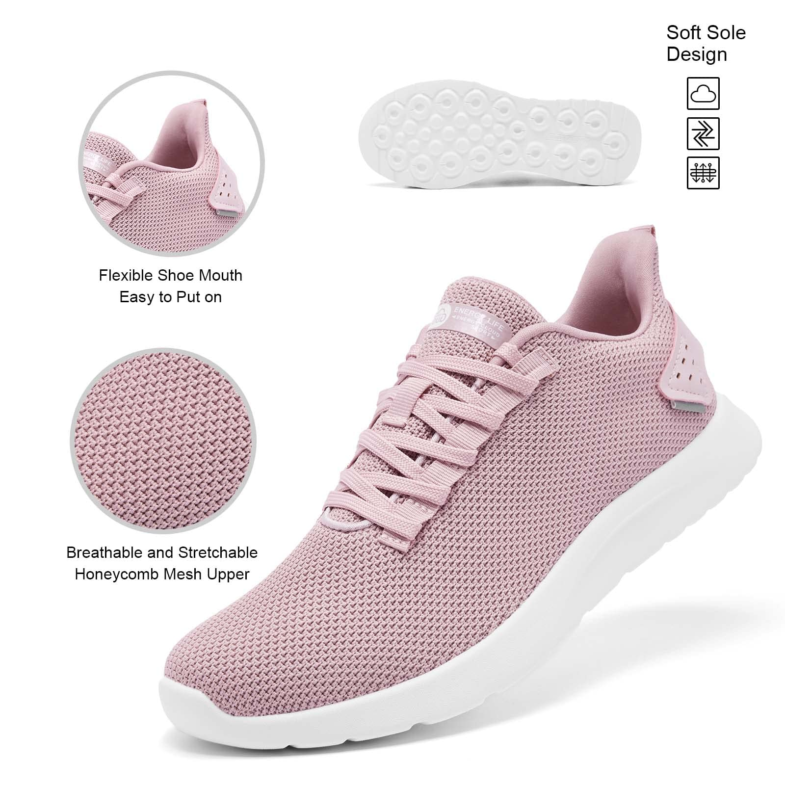 Lightweight Walking Shoes: Only weighs about 0.8 lb for each pair of women running gym shoes. Soft breathable mesh upper promises a comfy feeling, you won't feel tired even wearing these athletic shoes for a whole day.